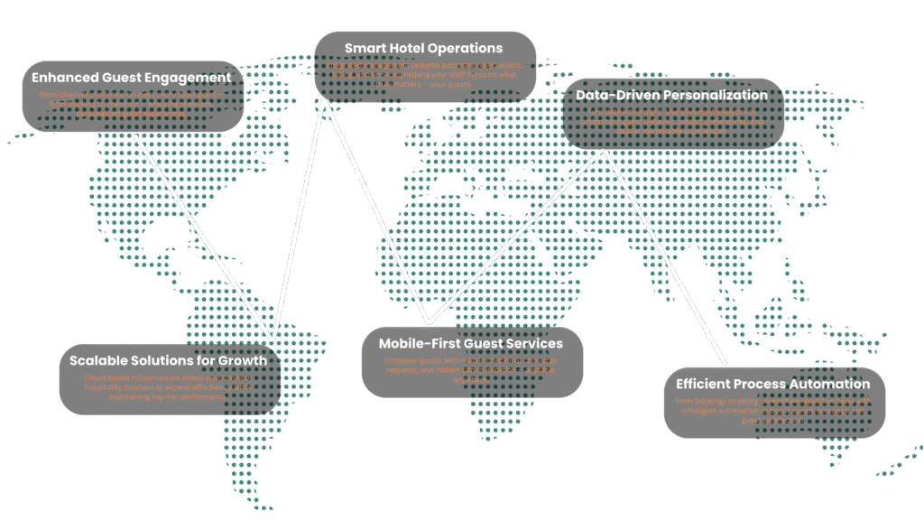 Our expertise spans across hotel management systems, booking engines, travel CRMs, ERP integrations, and customer engagement platforms — all designed to optimize operations, enhance guest satisfaction, and boost profitability.